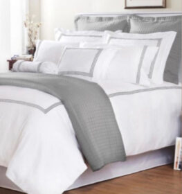 מערכת מצעים יוקרתית מכותנה מצרית בצפיפות חוטים גבוהה מאד – ריקמה באפור.