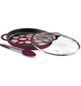 פלטת גריל עגולה עם מכסה זכוכית 30 ס”מ + מלקחיים BLACK MARBLE בורדו מבית Food appeal