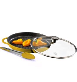 פלטת גריל עגולה עם מכסה זכוכית 30 ס”מ + מלקחיים BLACK MARBLE צהוב מבית Food appeal