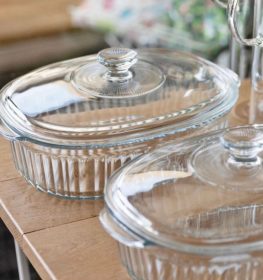 פיירקסים זכוכית עם מכסה פיירקס זכוכית – במספר גדלים – אובלי / עגול – לתנור ולהגשה !