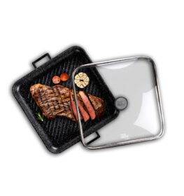 פלטת גריל עם מכסה זכוכית 34*34 ס”מ BLACK MARBLE מבית Food appeal