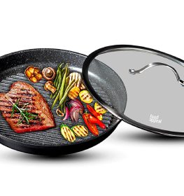 פלטת גריל עגולה עם מכסה זכוכית 30 ס”מ BLACK MARBLE מבית Food appeal