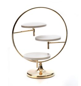 מעמד הגשה זהב 3 קעריות שיש לבן בטבעת גובה 43 ס”מ