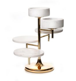 מעמד הגשה זהב 3 צלוחיות שיש לבן ו2 קעריות שיש גובה 35 ס”מ