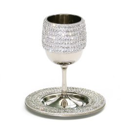 גביע קידוש נירוסטה כסף מעוטר יהלומים עם תחתית