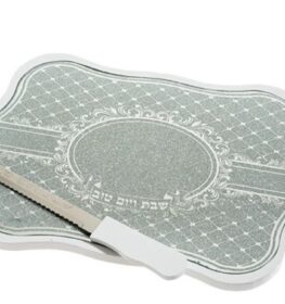 מגש חלות קריסטל עם סכין ארט יודאיקה