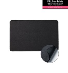 שטיחון מטבח דגם קלוע שחור עם בסיס גומי וחלק עליון מבד ג’אקרד עבה במיוחד ואיכותי.
