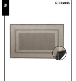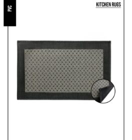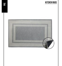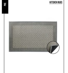 שטיחון מטבח דגם מסגרת אפור עם בסיס גומי וחלק עליון מבד ג’אקרד עבה במיוחד ואיכותי.