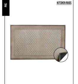 שטיחון מטבח דגם מסגרת בז’ עם בסיס גומי וחלק עליון מבד ג’אקרד עבה במיוחד ואיכותי.