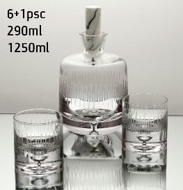 סט 6 כוסות + דקנטר מקריסטל צכי עם מכסה שיש אמיתי
