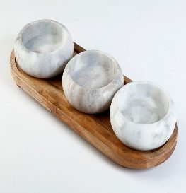 מגש עץ בוצ’ר+ 3 קערות משיש אמיתי