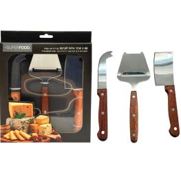 מארז 3 יח ‘ סכיני אירוח לגבינות עם ידיץ עץ אקשיה בוצ’ר אמיתי – לחיתוך והגשה
