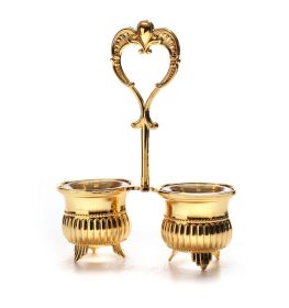 זוג מלחיות מתכת פתוחות ציפוי זהב פסים וידית נשיאה