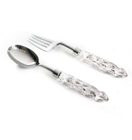 סט כף ומזלג לסלט כסף ידית זכוכית עגולה 28/27