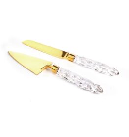 סט הגשה לעוגה זהב ידית זכוכית עגולה 28/28