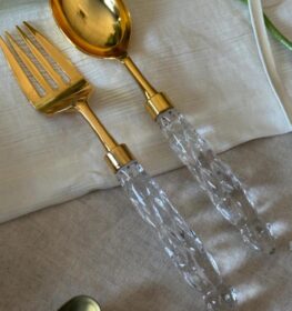 סט כף ומזלג לסלט זהב ידית זכוכית עגולה 28/27
