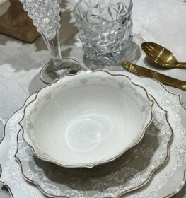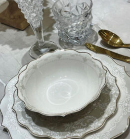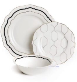 מערכת אוכל פורצלן בוין צינה בשילוב זהב ופס שחור