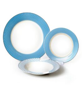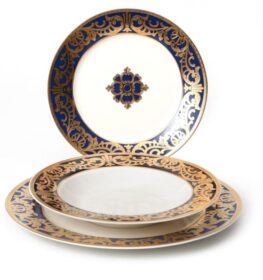 סט צלחות 18 חלקים כחול עם זהב אמיתי 24 קארט פורצלן בוין צינה