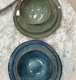 סט צלחות ירוק\כחול 18 חלקים דגם גול