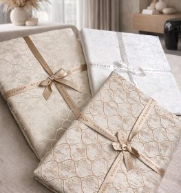 מפה תמר ג’קארד – דוחה כתמים ובלי גיהוץ – פסח 2026 לבן\שמנת\קפה