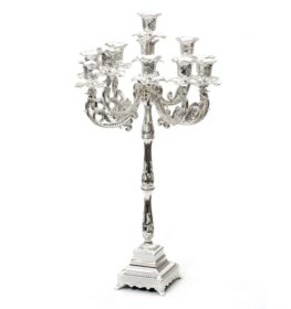 פמוט 9 קנים מהודר וגדול בציפוי כסף אמיתי – לא משחיר ולא מחליד גובה 37 ס”מ 32/32 ס”מ ציפוי לכה