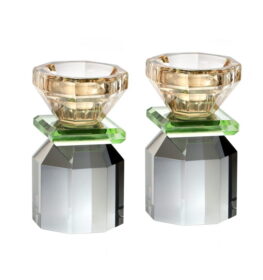 זוג פמוטים קריסטל אמבר בסיס שקוף גובה 10 ס”מ – עכשו במחיר כאסח !!