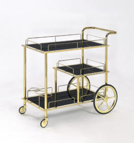 עגלה מלבנית מתכת shiny gold/ זכוכית שחורה 80/40 גובה 83 ס”מ