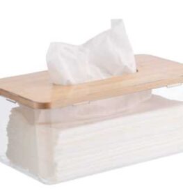 קופסה לטישו מאקריל עם מכסה עץ