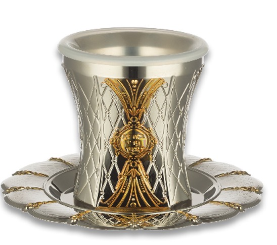 גביע קידוש מהודר משולב כסף עם נגיעות בזהב כולל תחתית – בציפוי כסף אמיתי