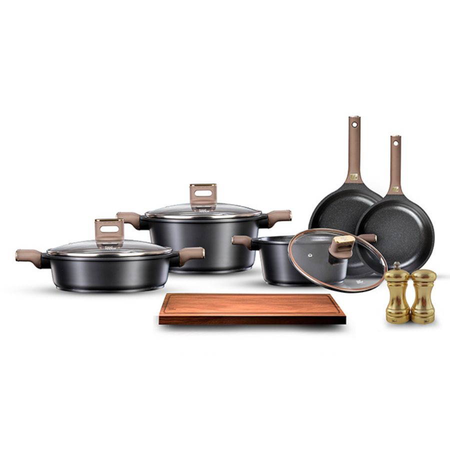 מארז כלי בישול 11 חל’ CHARM ידיות “אפקט העור” חום כהה מבית Food appeal