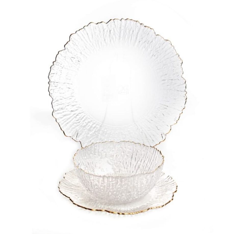 מערכת אוכל 18 חלקים פס זהב זכוכית גבישית