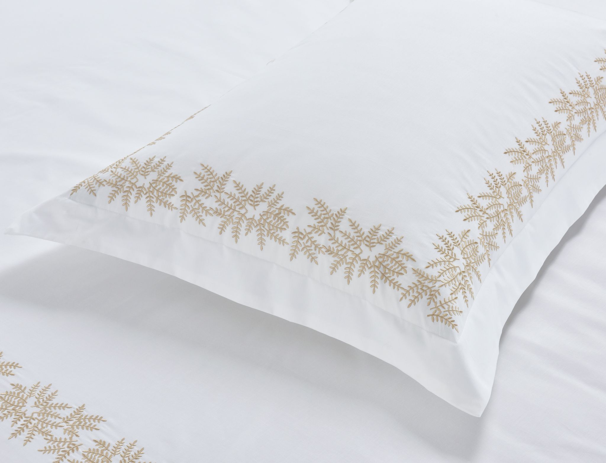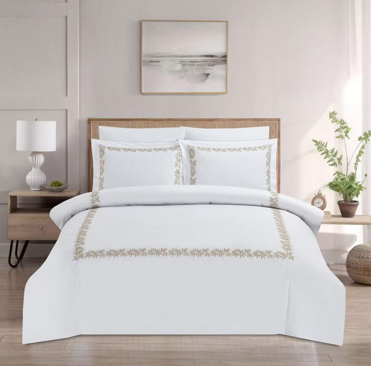 סט מצעים דגם רויאלטי בורדר – ריקמה שמפניה (זהב בהיר) 100% כותנה פרקל 300