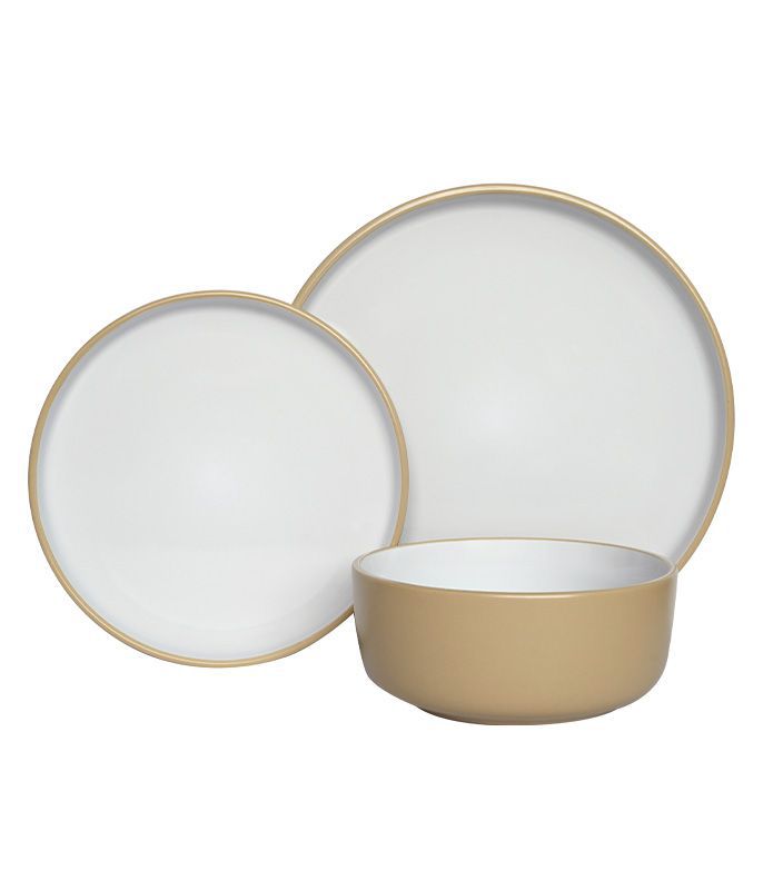 סט צלחות 18 חלקים לבן בפנים אבן בחוץ