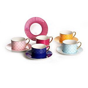 מערכת תה יוקרתית צבעונית עם 6 כוסות ו-6 צלחות66