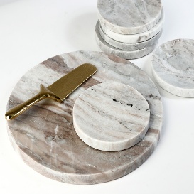 סט 8 חלקים משיש אמיתי- מגש גדול + 6 צלחות+כף עוגה מבראס LEOPARD MARBLE