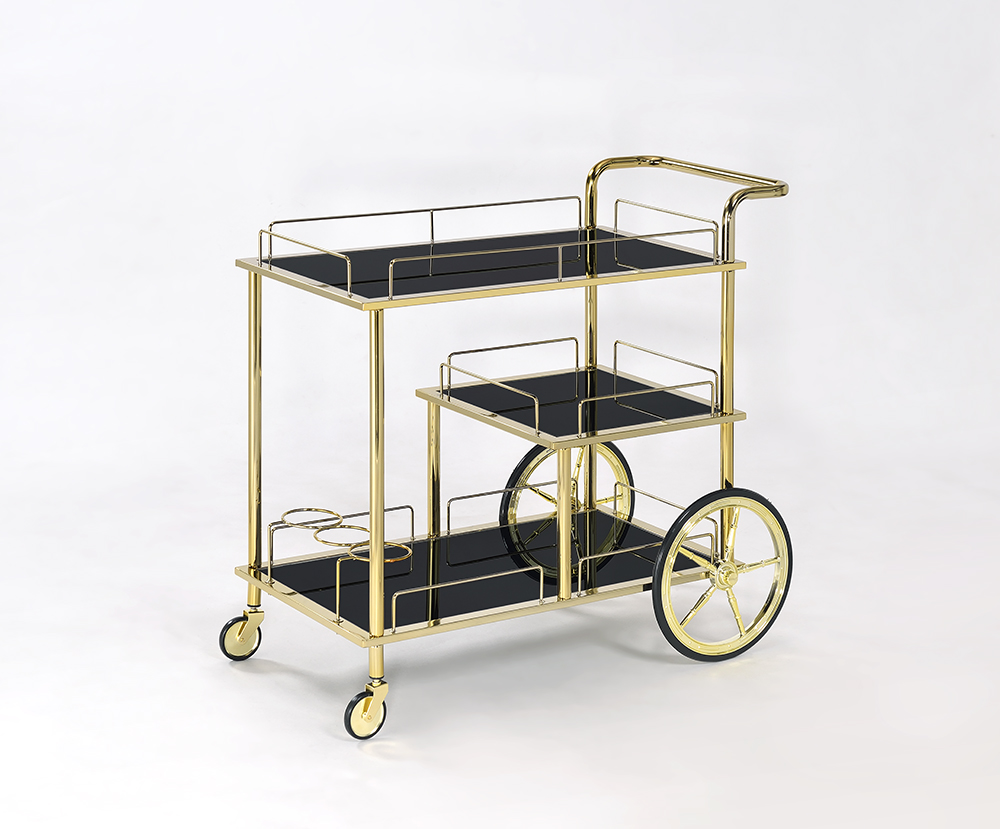 עגלה מלבנית מתכת shiny gold/ זכוכית שחורה 80/40 גובה 83 ס”מ