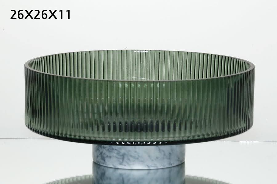 קערת קריסטל ירוק על רגל שיש אמיתי