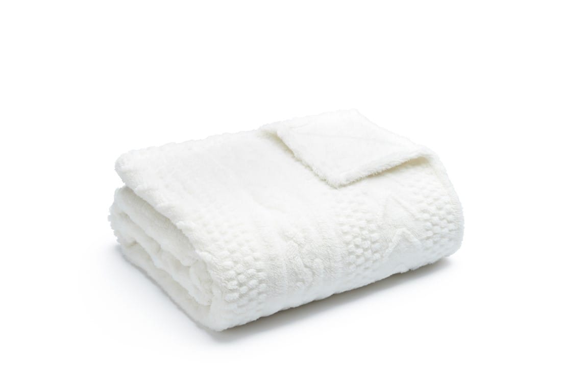 שמיכת ג’אקרד פרוותית מפנקת דגם קרולינה. 280 גרם למ”ר שמנת