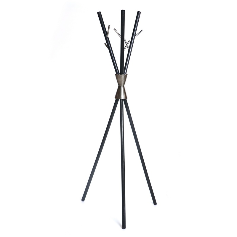 מתלה מעילים עץ מושחר מתכת כסף גובה 165 ס”מ 50/57 ס”מ