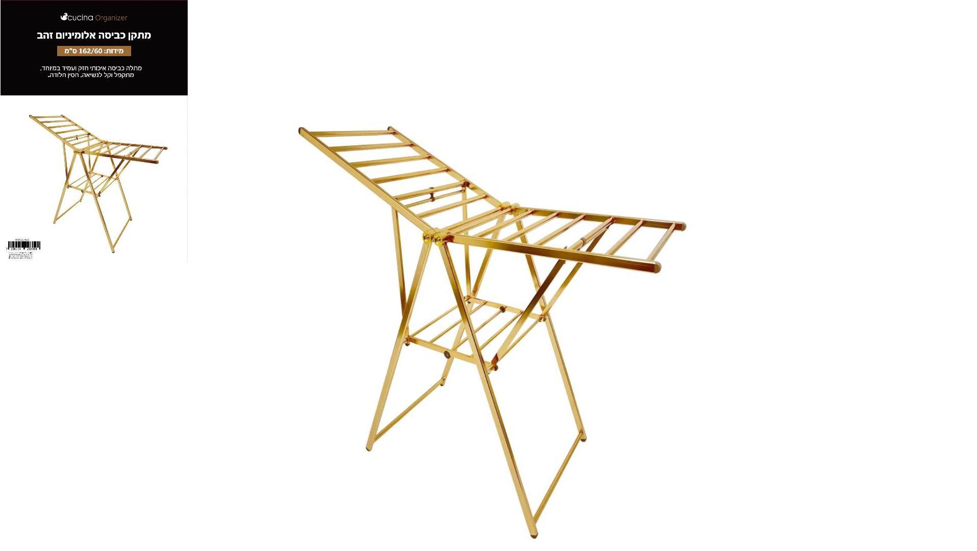 מתקן כביסה אלומניום זהב אל חלד ! חזק במיוחד ! 162/60 ס”מ