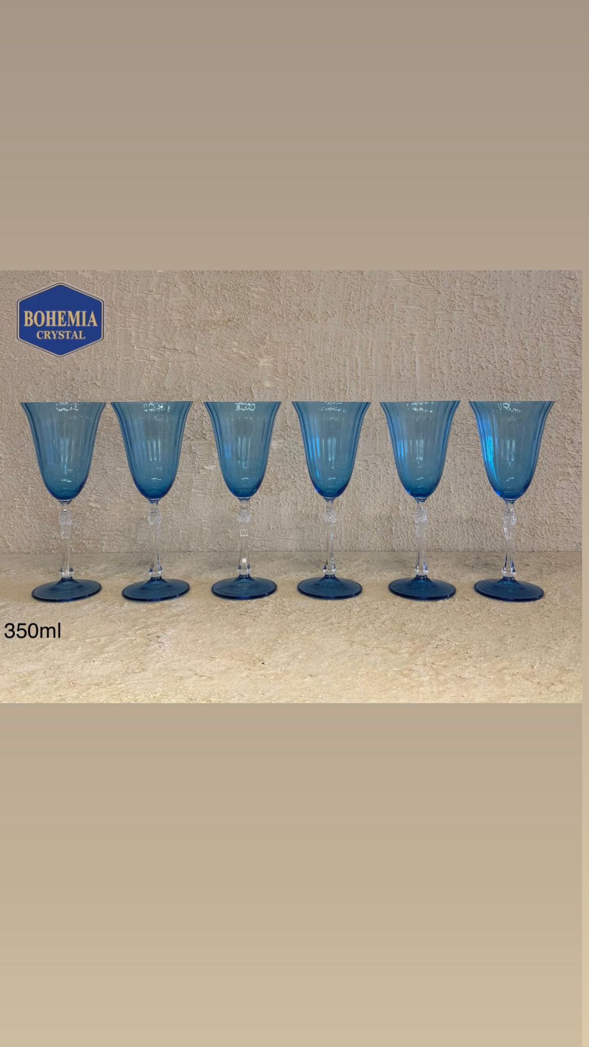 סט 6 יח’ גביעי יין בוהמיה יוקרתיים – קריסטל צ’כי – צבע תכלת – קולקציה 2026